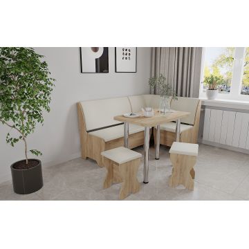 Set coltar bucatarie Tunis ,cu masa si 2 tabureti Stejar Aur+Fildes