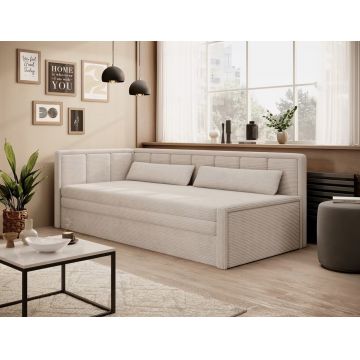 Canapea bej extensibilă/cu spațiu de depozitare cu tapițerie din catifea reiată 244 cm Arcadova – ELTAP