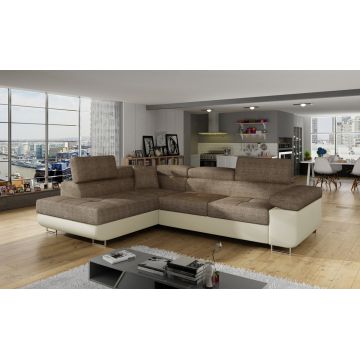 Coltar extensibil stanga 4 locuri, ELTAP, Sorento, 296x194x78 cm, lemn/poliester, maro/bej
