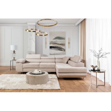 Coltar extensibil dreapta 4 locuri, ELTAP, Sorento, 296x194x78 cm, lemn/poliester, bej inchis/bej