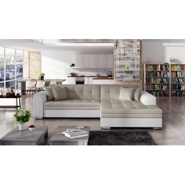 Coltar extensibil stanga 4 locuri, ELTAP, Sorento, 296x194x78 cm, lemn/poliester, bej/alb