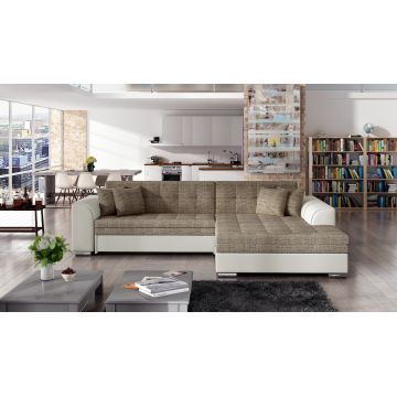 Coltar extensibil dreapta 4 locuri ELTAP, BR15, Bergen, 247x214x83 cm, lemn/poliester, bej/maro inchis