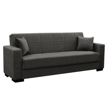 Canapea extensibila cu depozitare pentru trei persoane Lincoln, tesatura antracit, 225x85x90cm 85x225