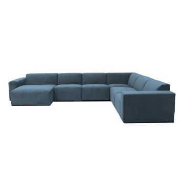 Colțar albastru cu tapițerie din catifea reiată (cu colț pe partea stângă ) Sting – Scandic