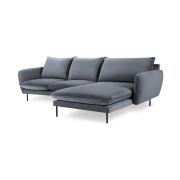 Colțar gri cu tapițerie din catifea (cu colț pe partea dreaptă/cu șezlong) Loretto – Cosmopolitan Design