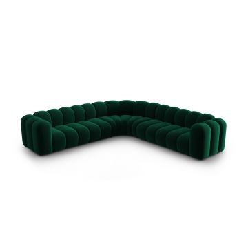 Coltar panoramic stanga 7 locuri, Ruby, Micadoni Home, BL, 366x273x69 cm, catifea, verde bottle