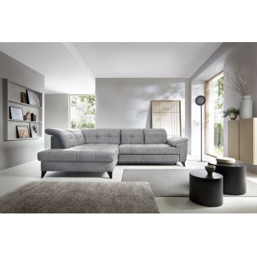 Coltar extensibil stanga 6 locuri ELTAP, Th-44, Thiago, 342x208x88 cm, lemn/poliester, gri deschis