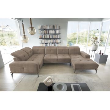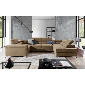 Coltar extensibil reversibil 5 locuri ELTAP, AsdU-53, Asgard, 326x202x93 cm, lemn/poliester, maro deschis