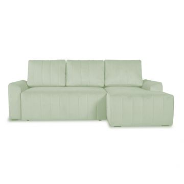 Coltar Extensibil Dreapta Mark, Catifea, 4 Locuri, Lada Depozitare, Verde, 240 Cm