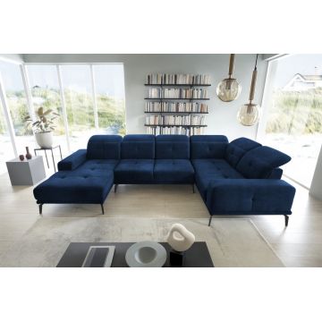 Coltar extensibil stanga 6 locuri ELTAP, Th-43, Thiago, 342x208x88 cm, lemn/poliester, albastru inchis