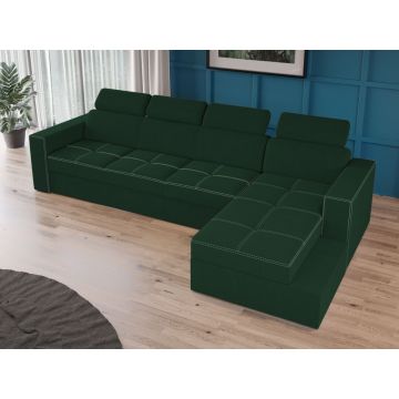 Coltar Extensibil Cu Insula Dreapta Cu Lada Tiago, 5 Locuri, Tetiere Reglabile, Verde, 243 Cm