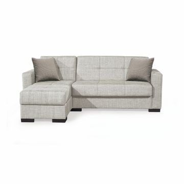 Coltar ANA LUX extensibil, cu lada depozitare, colt interschimbabil, gri deschis, 200x140x83 cm