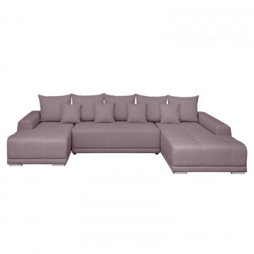 Coltar MARIBO L BUCLE extensibil, cu arcuri si lada depozitare, colt dreapta, gri cu nuante roz, 282x205x92 cm