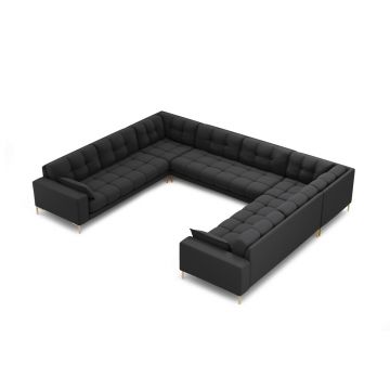 Canapea panoramica 9 locuri, Mamaia, Micadoni Home, BL, 337x256x75 cm, catifea, gri inchis