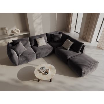 Coltar modular dreapta 4 locuri, Bloom-184, Micadoni Home, 316x310x95 cm, catifea, gri inchis