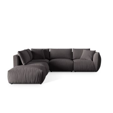 Coltar modular stanga 4 locuri, Bloom-184, Micadoni Home, 316x310x95 cm, catifea, gri inchis