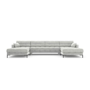 Canapea panoramica 6 locuri, Mamaia, Micadoni Home, BL, 383x185x75 cm, catifea, argintiu
