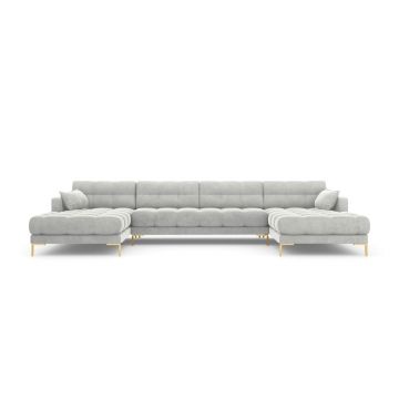 Canapea panoramica 6 locuri, Jennifer-51, Micadoni Home, 364x166x70 cm, catifea, argintiu