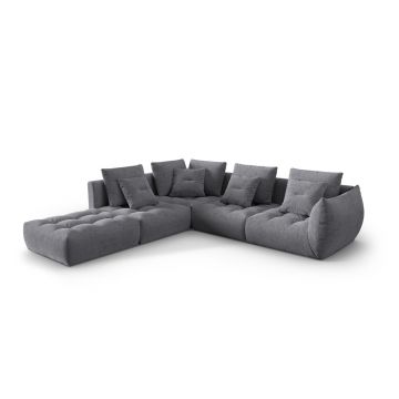Coltar modular stanga 4 locuri, Bloom-184, Micadoni Home, 316x310x95 cm, catifea, gri