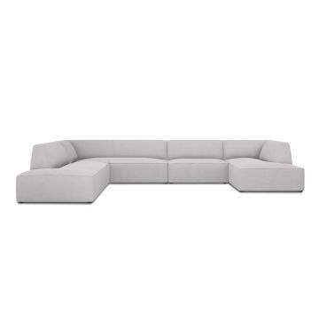 Canapea panoramica 6 locuri, Jennifer-51, Micadoni Home, 364x166x70 cm, catifea, gri deschis
