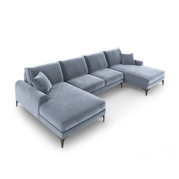 Coltar panoramic, Madara, Mazzini Sofas, 6 locuri, 334x182x90 cm, catifea, albastru deschis