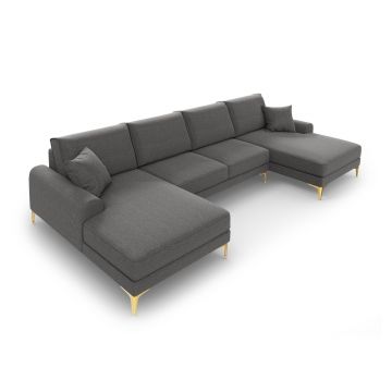 Coltar panoramic, Madara, Mazzini Sofas, 6 locuri, gold legs, 334x182x90 cm, material structurat, gri inchis