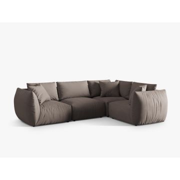 Colțar modular maro deschis cu tapițerie din catifea (cu colț pe partea dreaptă/în formă de "U") Bellis – Micadoni