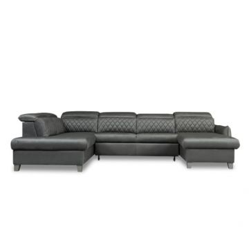 Coltar U Extensibil Tiago, Stanga, 6 Locuri, Tetiere Reglabile, Gri, 330 Cm